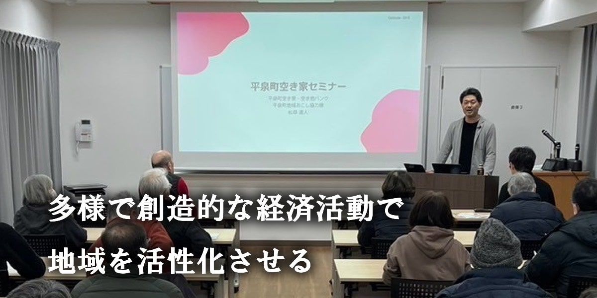 地方創生に必要な人・空間・経済の再構築を目指し、他拠点居住・共生・再生を実践。空き家等の遊休資源と人材循環を活かし、持続可能な地域再生を社会実装する。